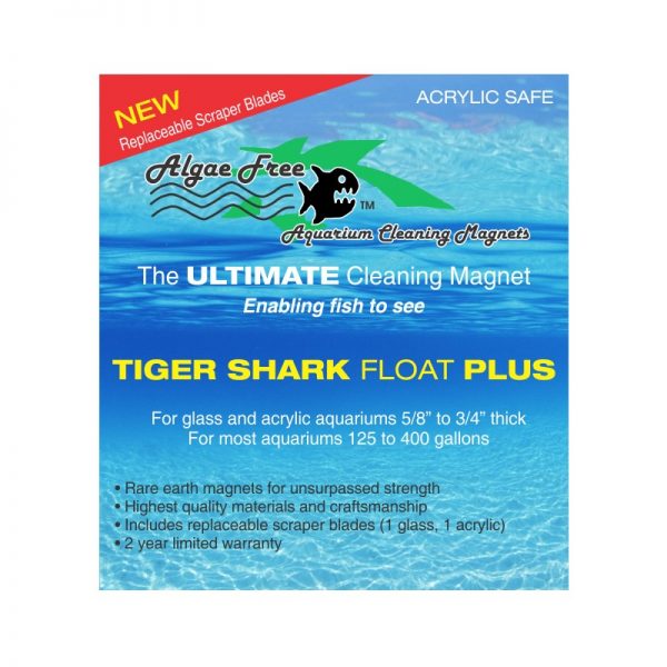 The new Tiger Shark Float Plus has a detachable and replaceable scraper blade for glass (stainless steel) or acrylic (plastic) aquariums and will make algae cleaning quick and easy.